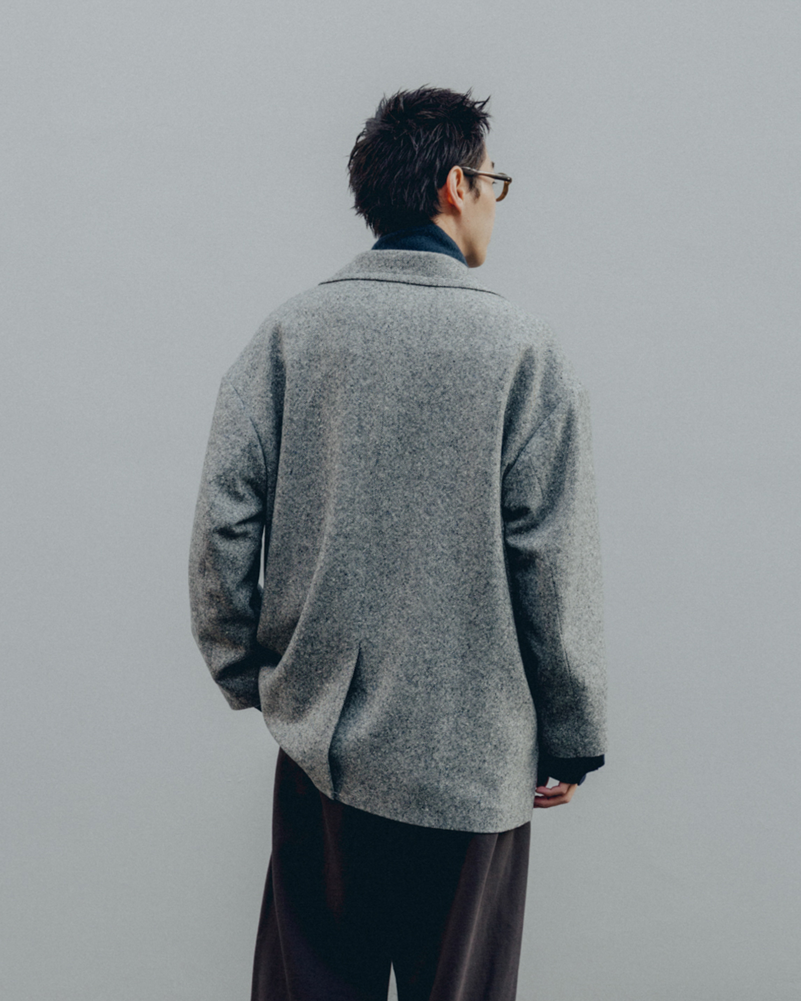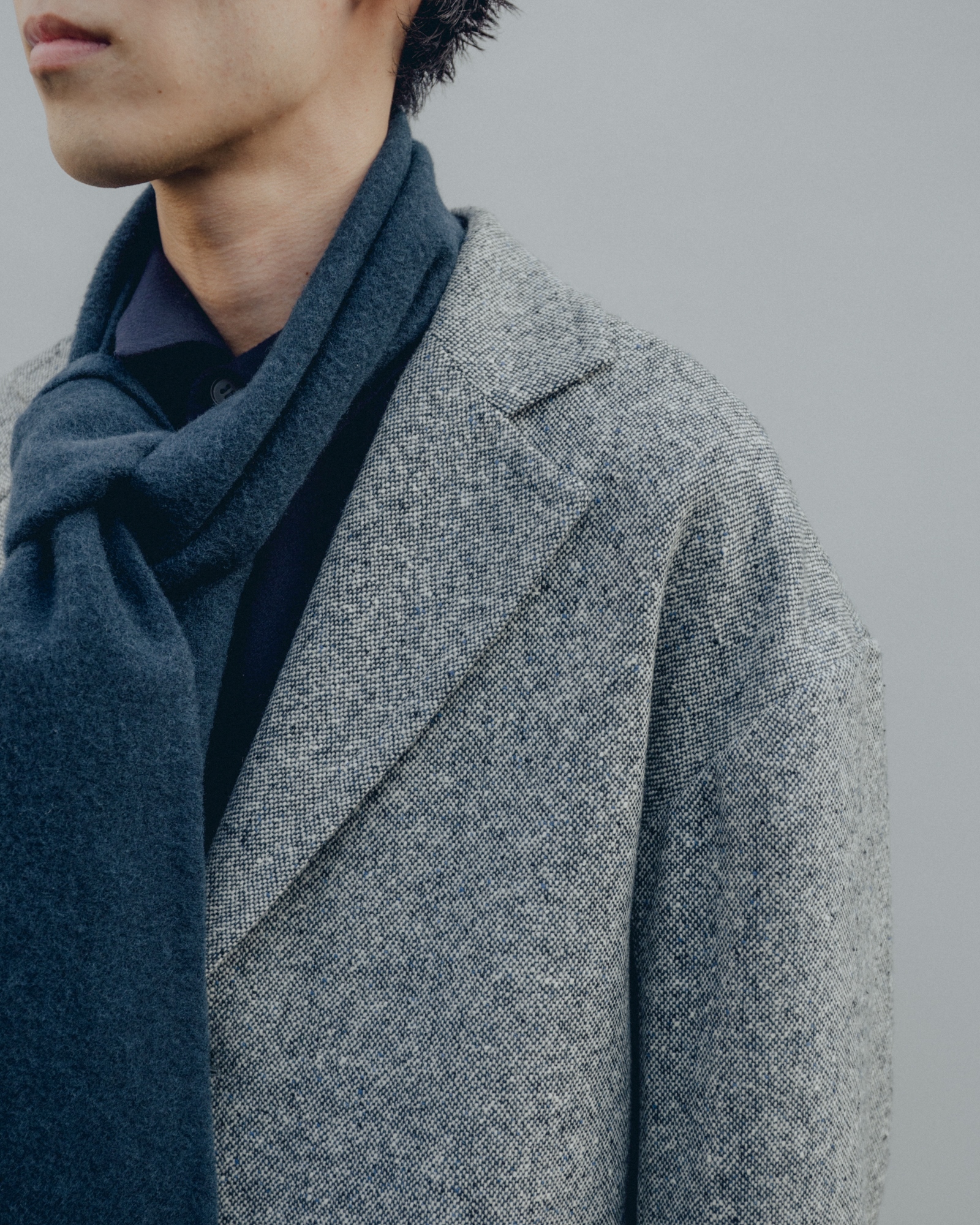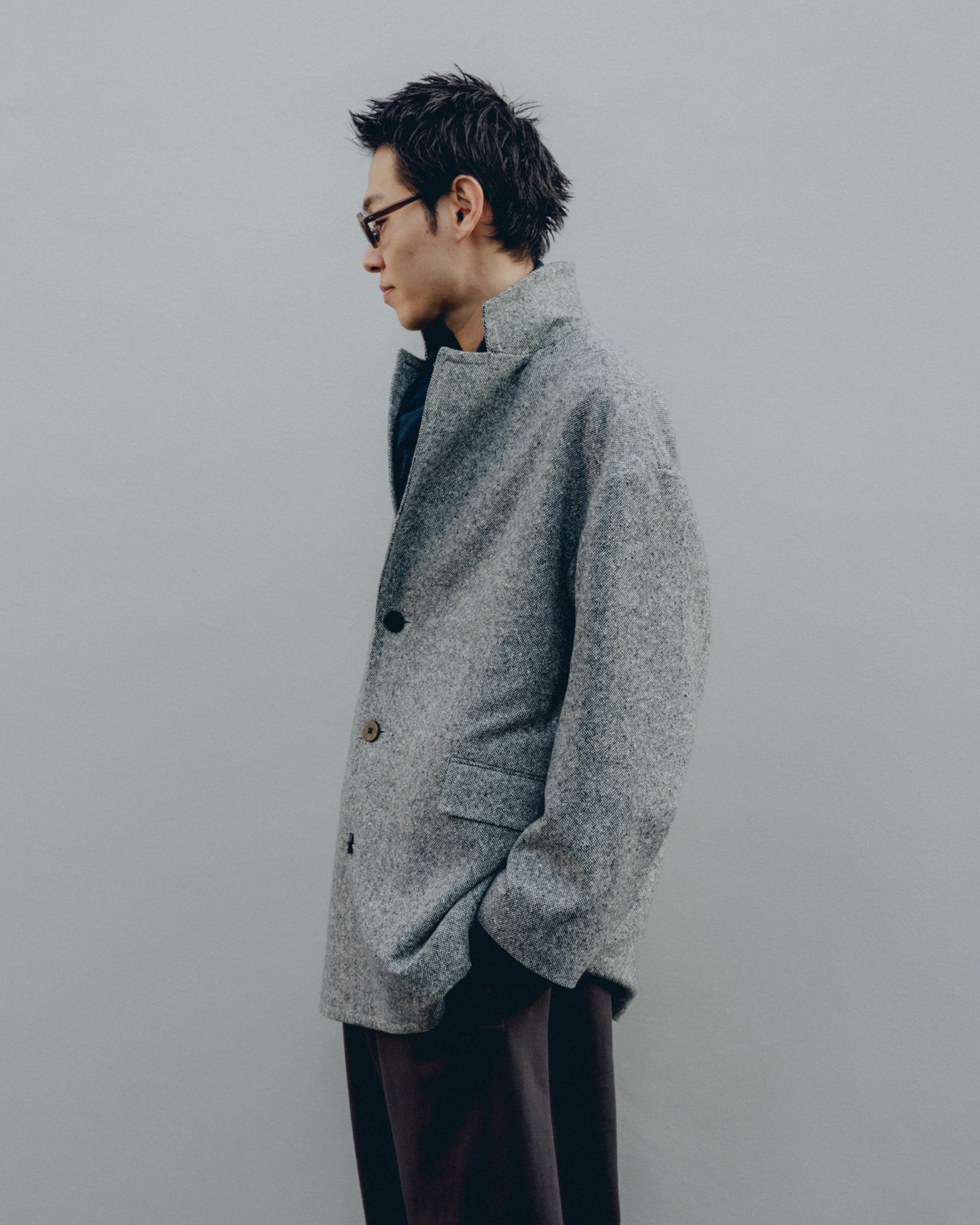 全体を通してPコートの持つ国柄や背景を削ぎ落し無属性に昇華させたこのコートは、特に固定概念にとらわれず自由な発想でコーディネートしてください。
