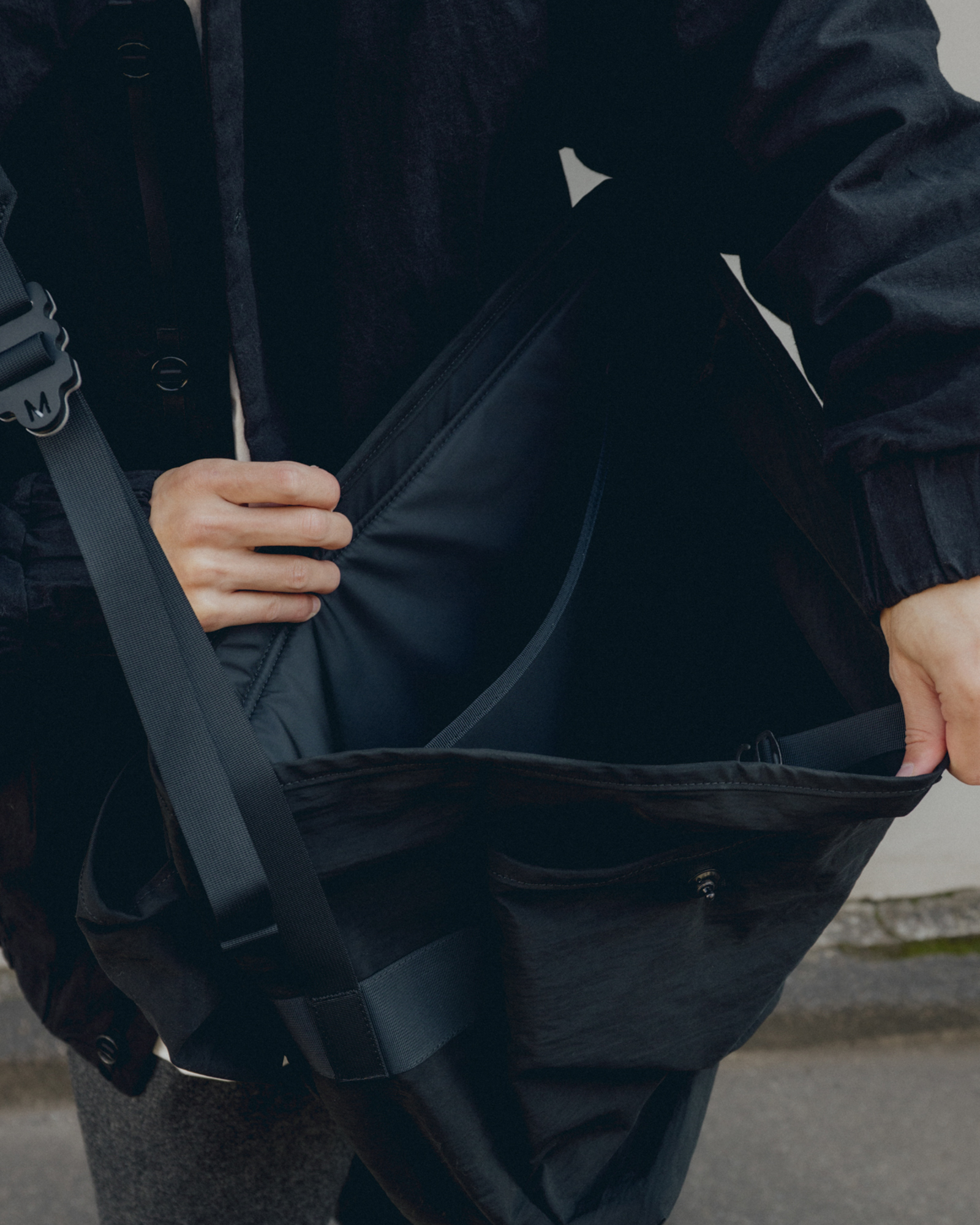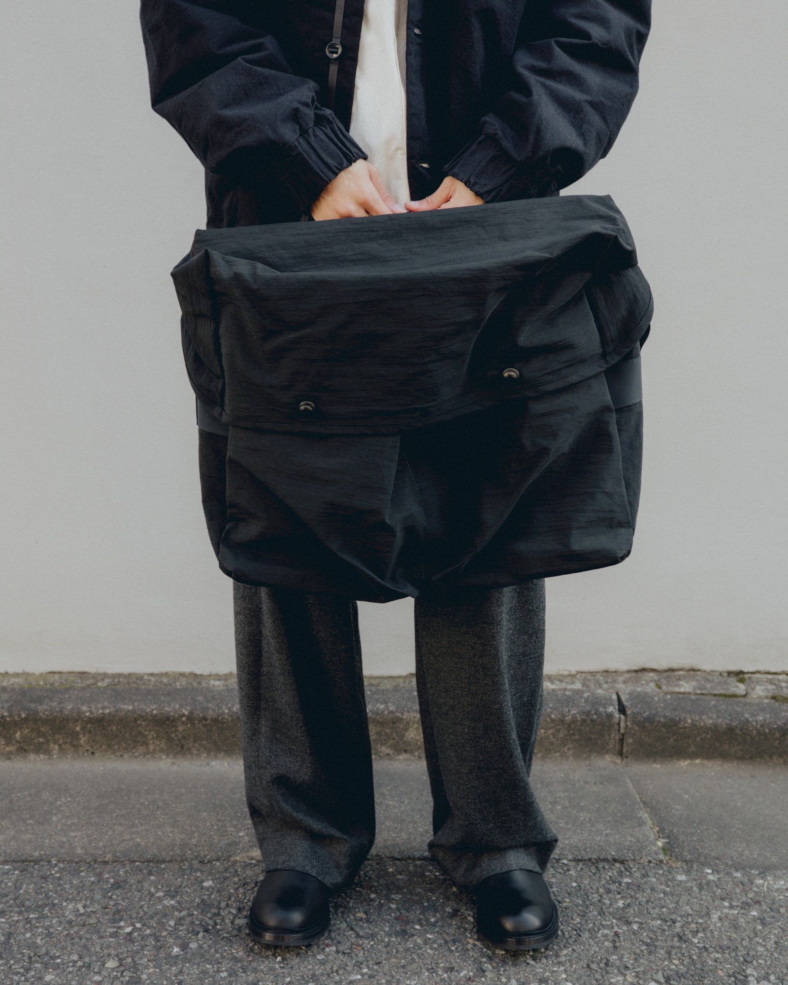 吉田カバンでバッグや小物のデザインに携わり、経験を積んだのち独立したデザイナー松村力也氏とコラボレーションしたクロスボディメッセンジャーバッグ。ロイヤルメール(イギリスの郵便事業のブランド名)の配達バッグを基にデザインされている。広々としたメインコンパートメントには内部にパッド入りノートパソコンスリーブを装備。前面にはベル型ポケット、高密度ストラップにはショルダーパッドが付属する。ドイツ製のコーティング真鍮スナップ、オーストラリア製のアルミ製スナップスライダーを使用している。