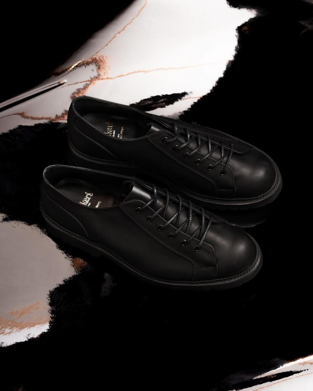 TRICKER’Sのモンキーブーツ自体、アイレットがつま先の方までくるというデザインなので、短靴にした時に6アイレットであることも相まってスニーカーのようにも見えるのが特徴。