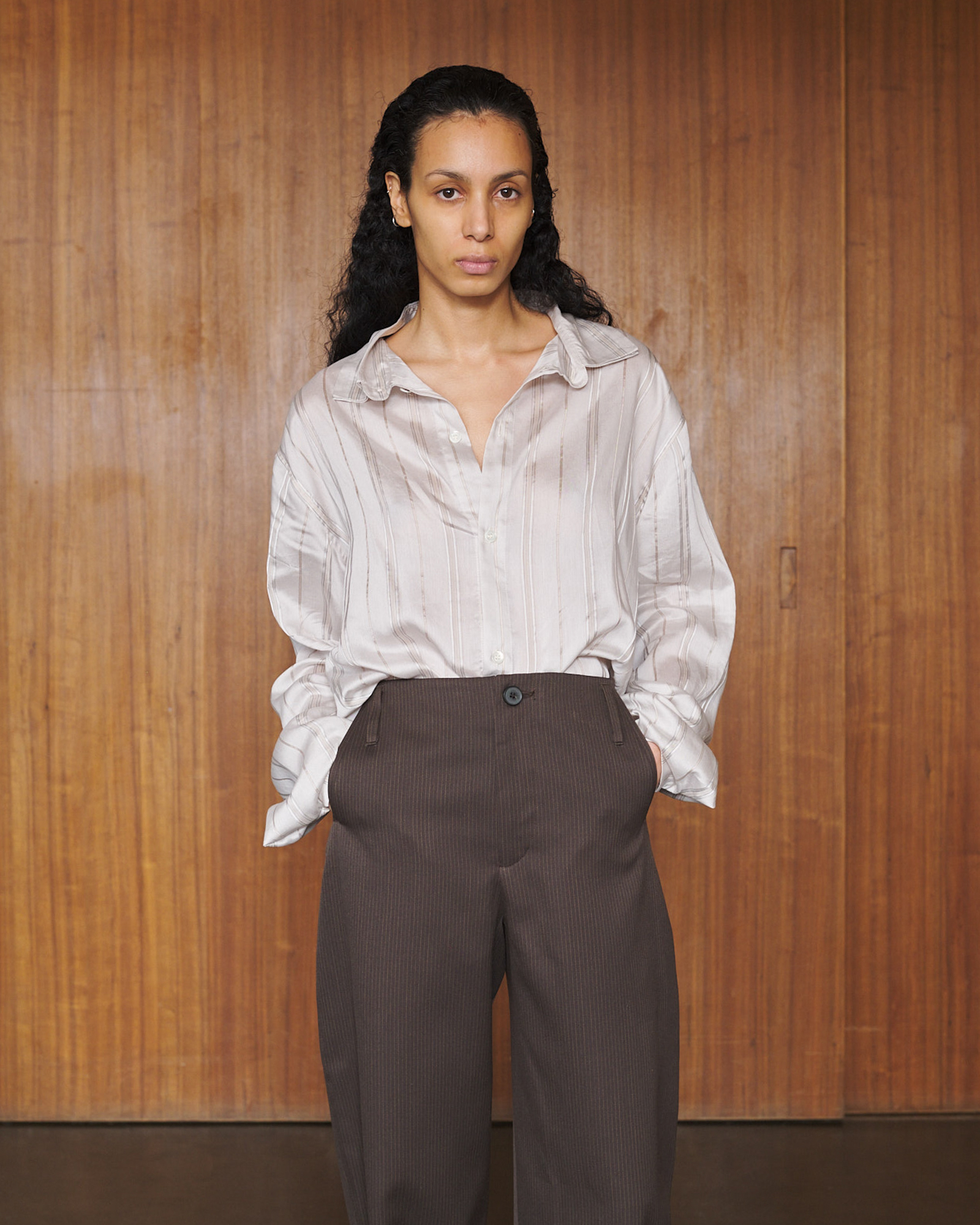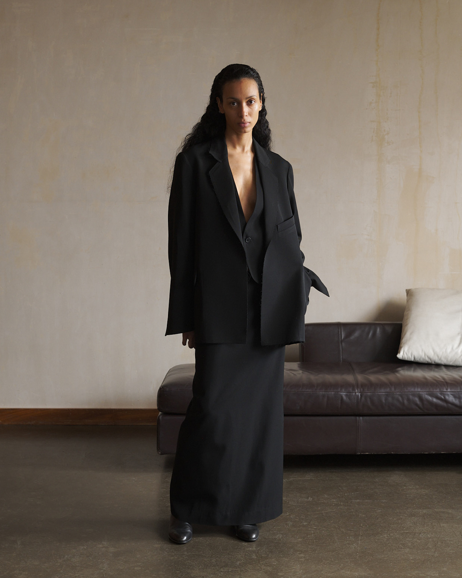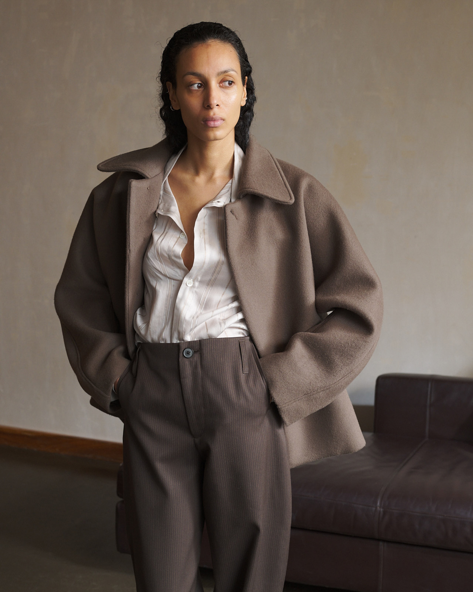 彼女の代名詞ともいえるブレザー&トラウザーの世界観にとどまらず、よりカジュアルなアイテムへと創造の幅を広げたコレクションです。